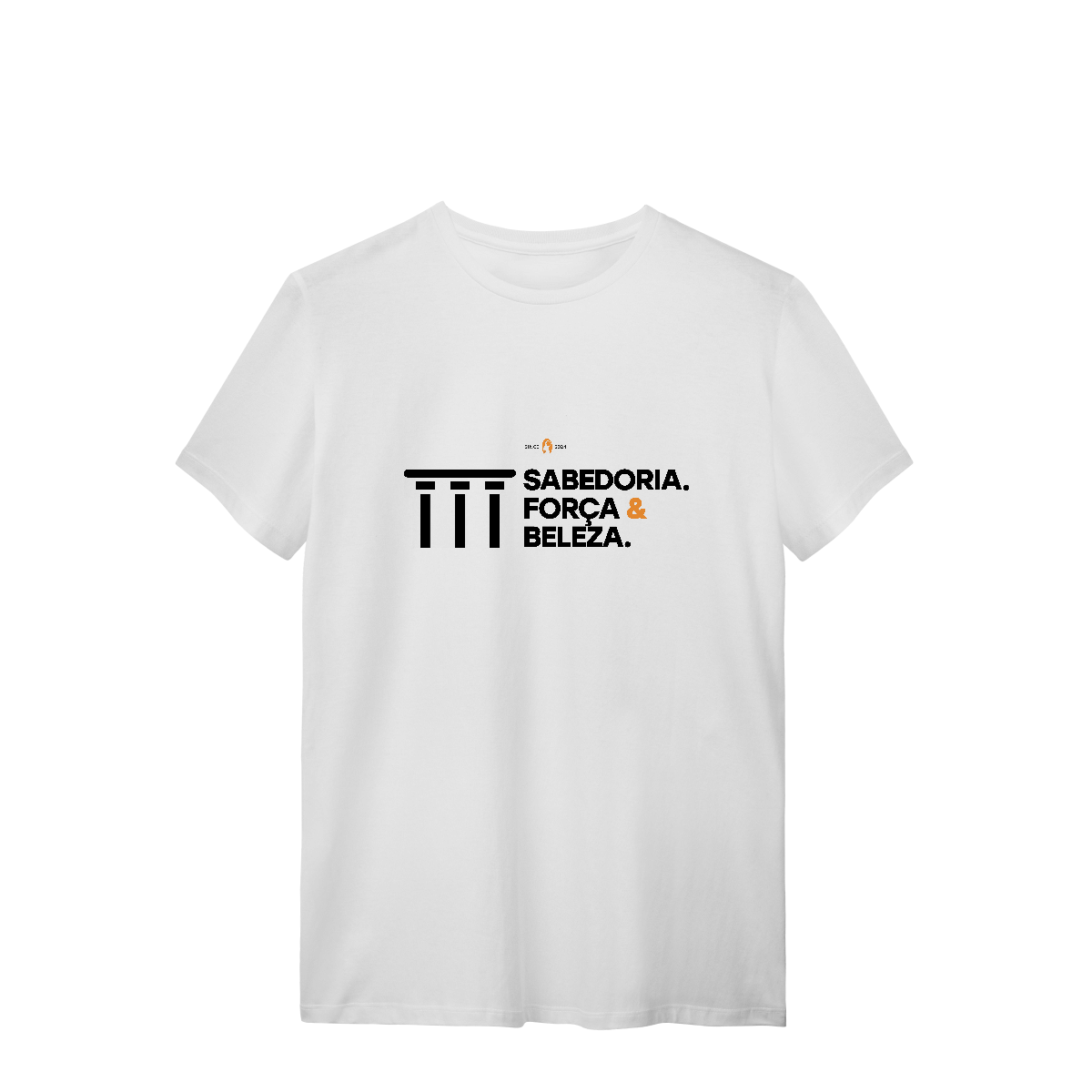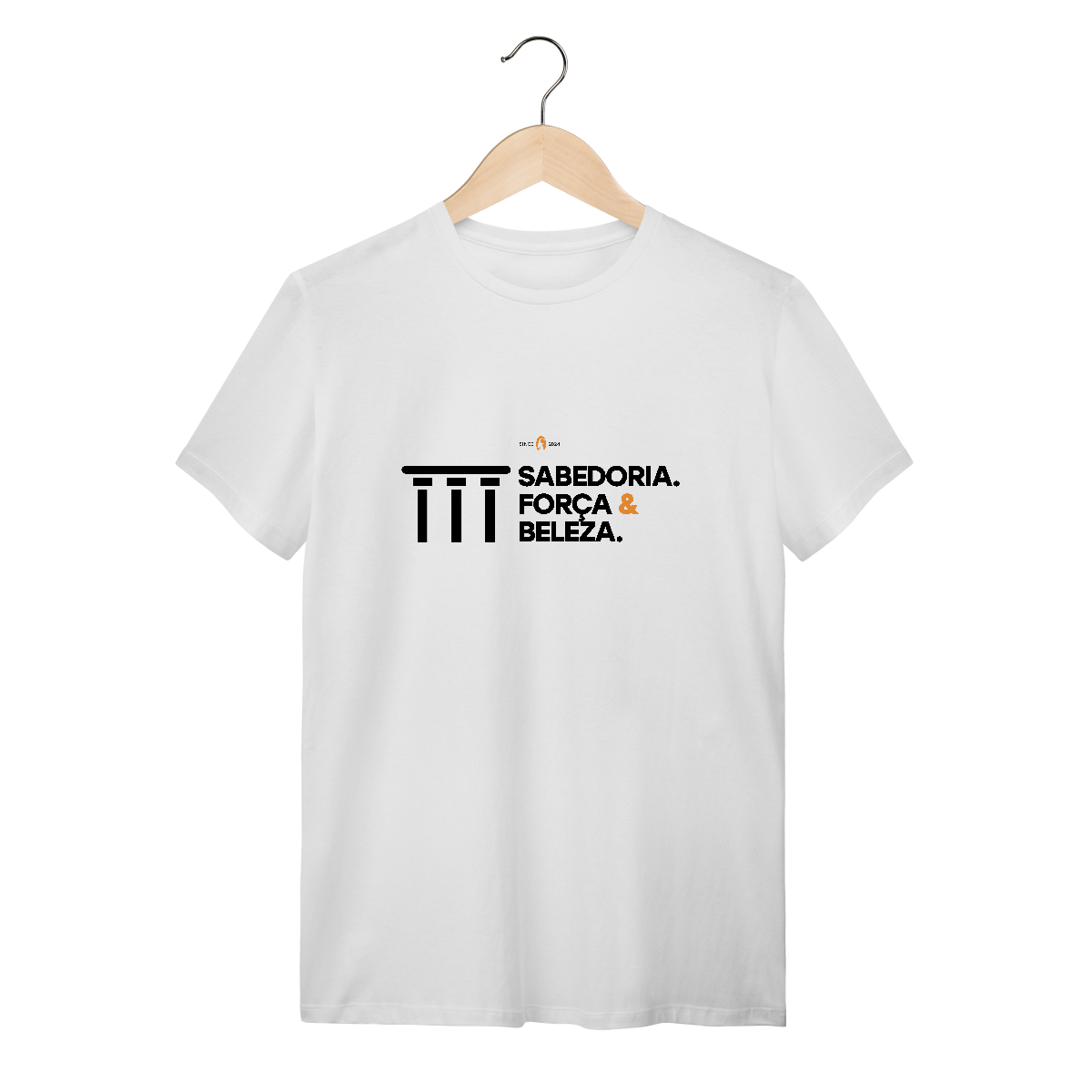 A inscrição "Sabedoria. Força e Beleza." remete aos pilares que sustentavam os templos da antiguidade, representando os fundamentos da evolução pessoal e do aperfeiçoamento contínuo. Essa mensagem reforça que, assim como na arquitetura, a excelência se constrói com equilíbrio entre o intelecto, a força e a beleza, valores essenciais na trajetória maçônica.