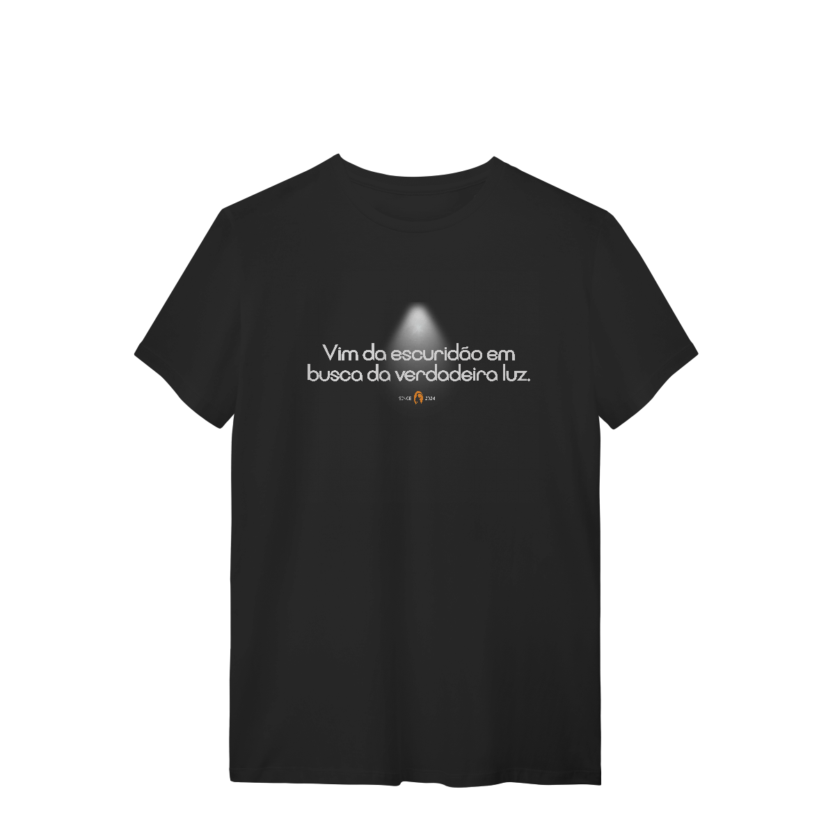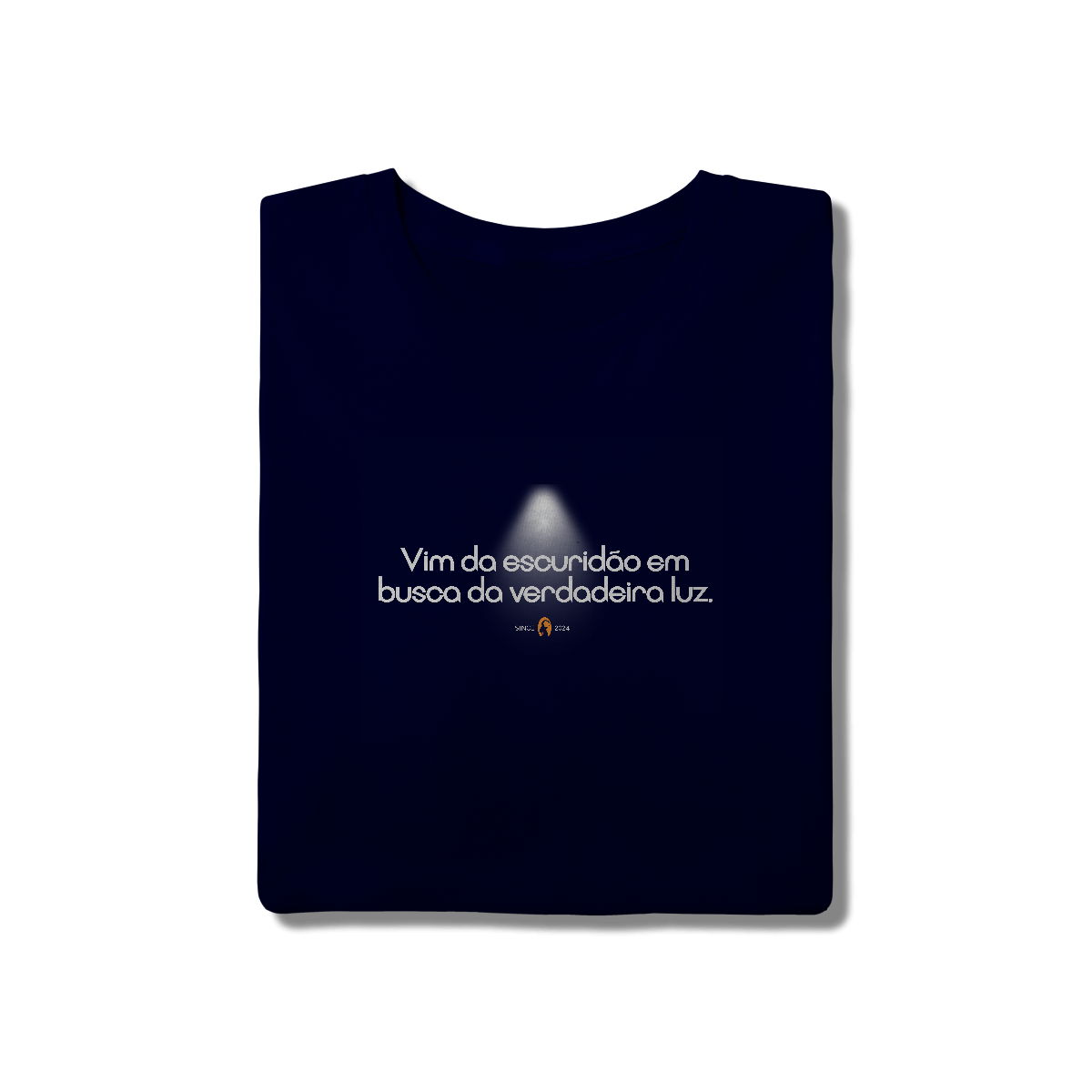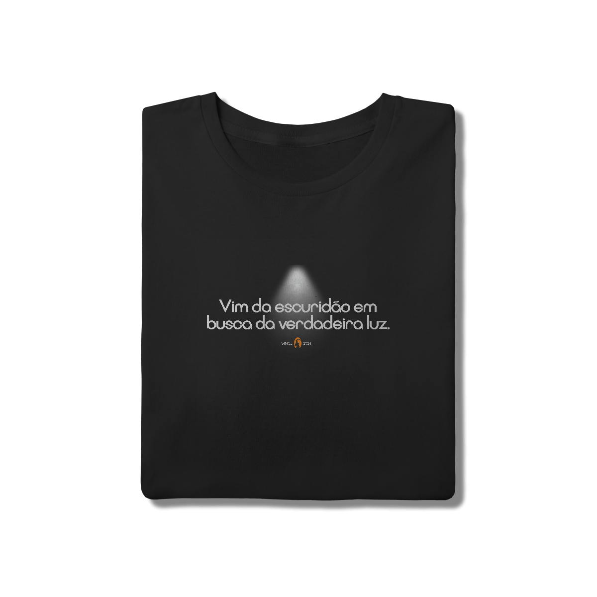 A inscrição "Vim da escuridão em busca da verdadeira luz" representa o caminho de superação e transformação, lembrando que a verdadeira evolução nasce na superação das sombras e na busca constante pela verdade e sabedoria.