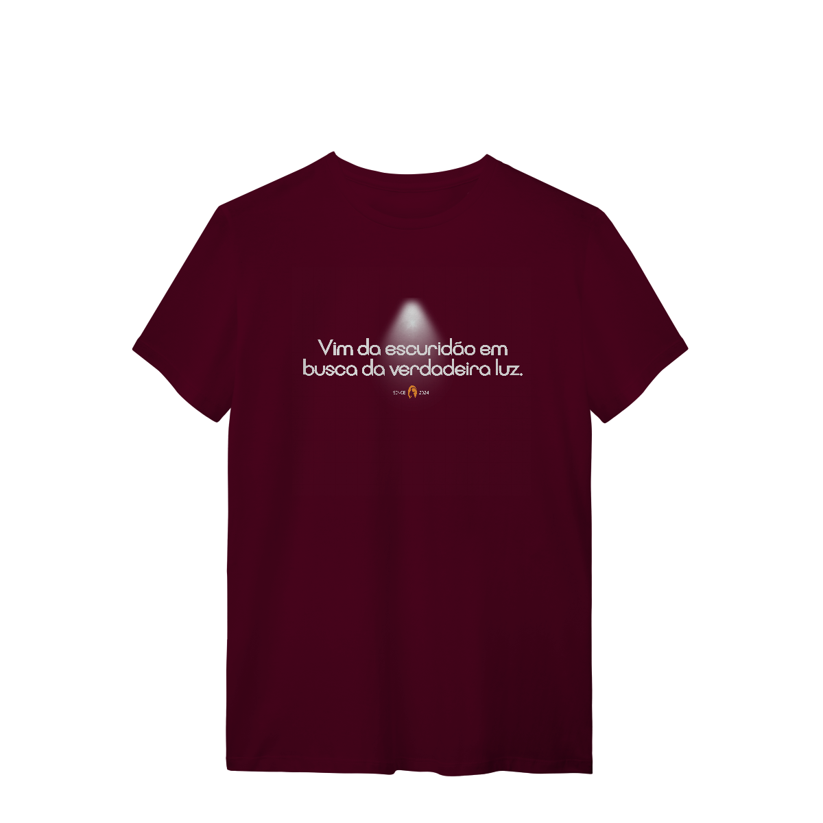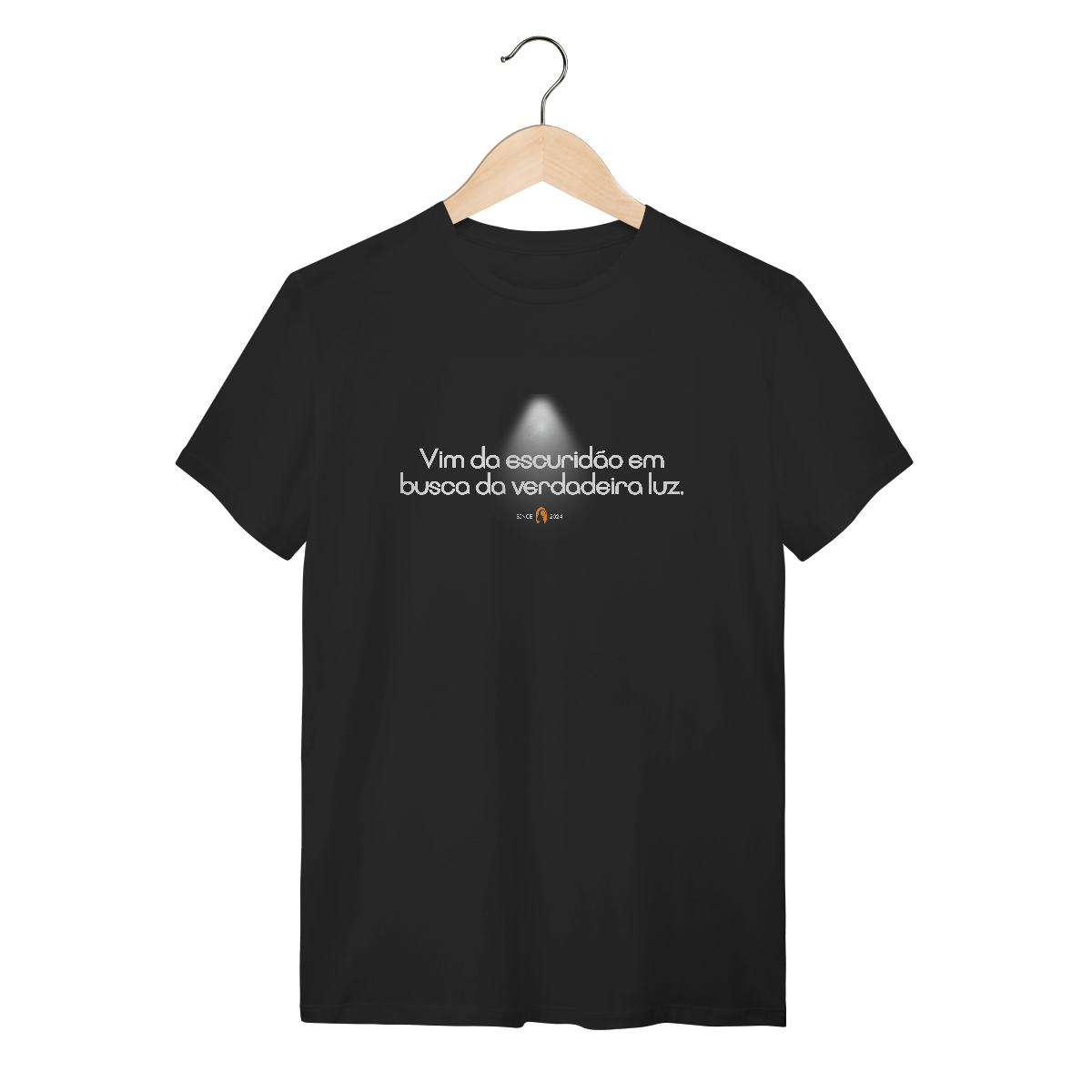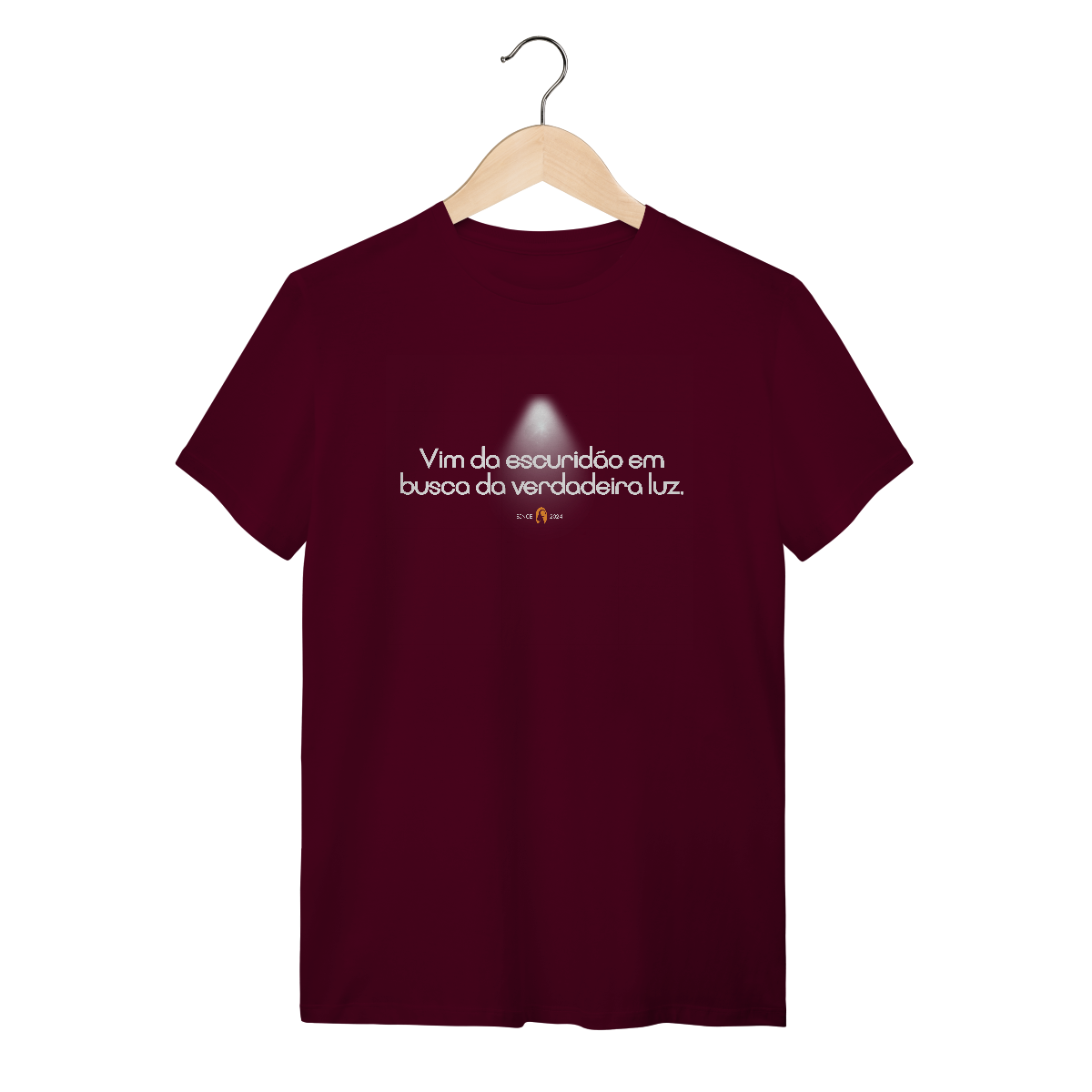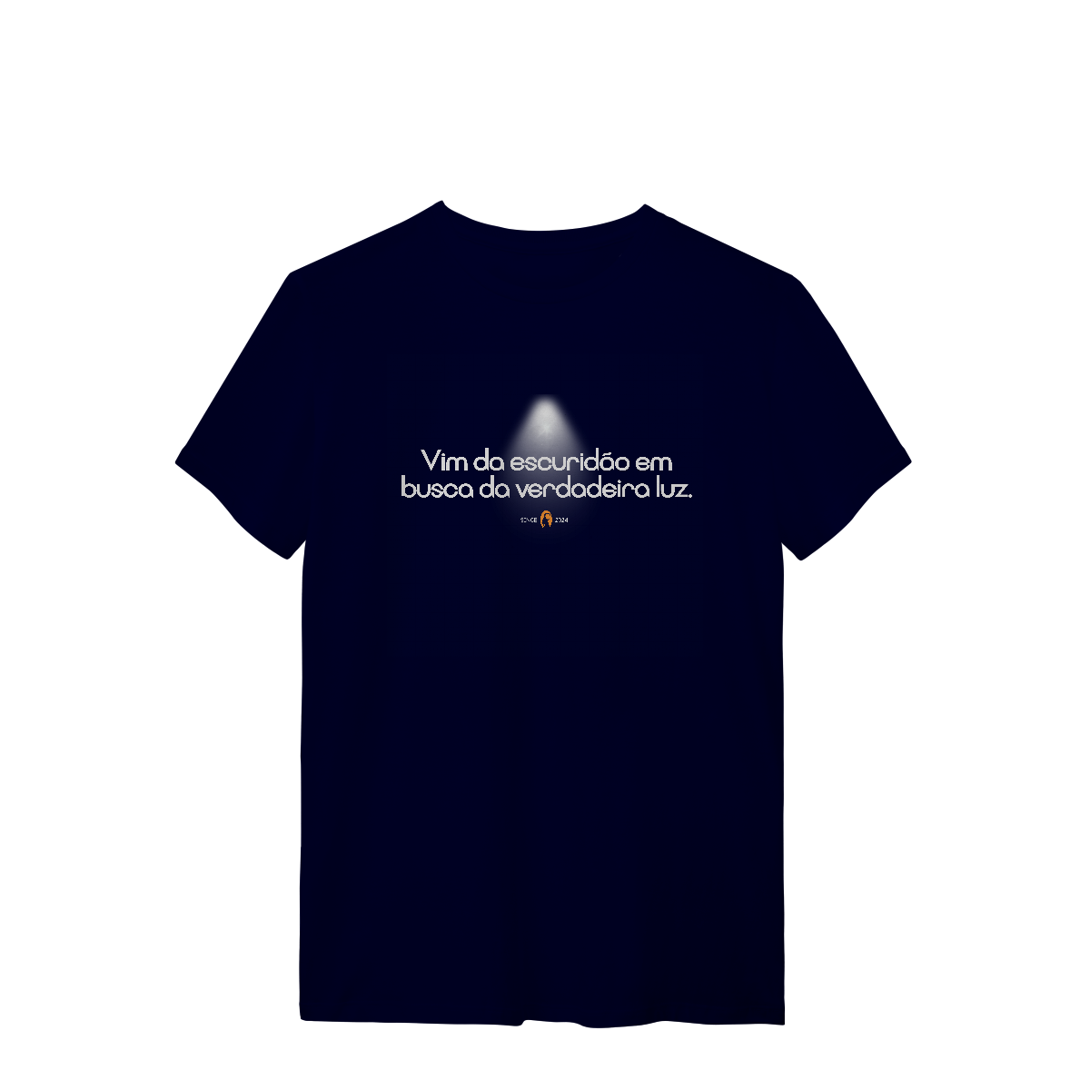 A inscrição "Vim da escuridão em busca da verdadeira luz" representa o caminho de superação e transformação, lembrando que a verdadeira evolução nasce na superação das sombras e na busca constante pela verdade e sabedoria.