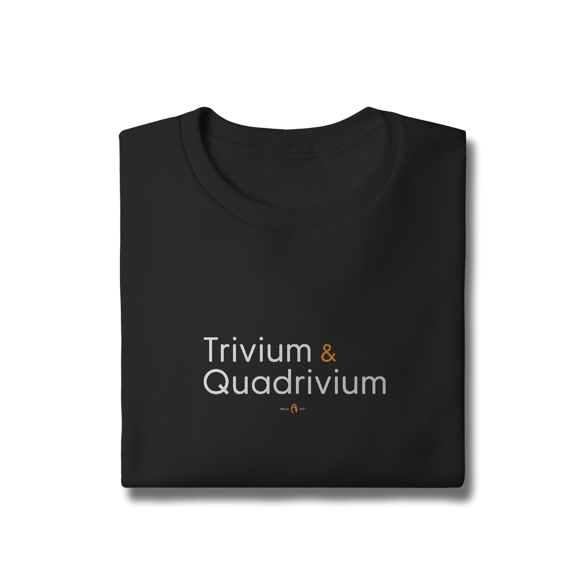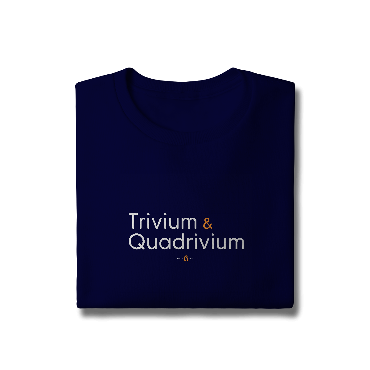 A expressão "Trivium & Quadrivium" simboliza a busca pelo conhecimento e a harmonia entre as artes liberais. Este design minimalista não apenas complementa seu estilo, mas também carrega consigo um profundo significado intelectual e filosófico, representando a jornada contínua de aprimoramento pessoal e sabedoria.